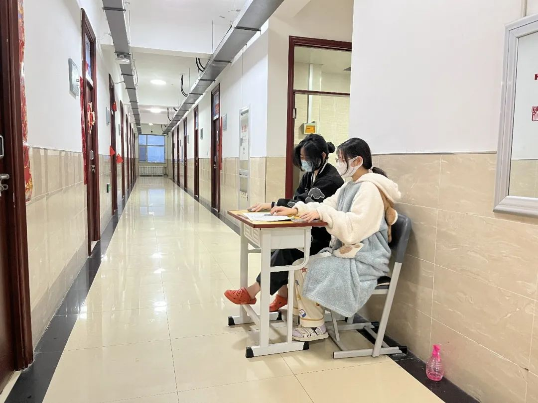 在天刚亮时,值班同学便在空荡的走廊里开始值班,他们化身“小值班员”坚守宿舍防线,在寝支持学校的抗疫部署工作。