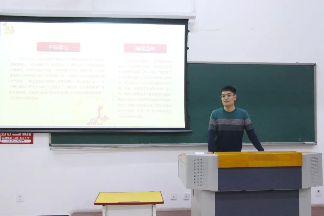 会上,我院分团委书记李克强老师带领大家一起学习习近平总书记在“七一”重要讲话中,通过全面回顾党的百年奋斗历程,展望了中华民族伟大复兴的光明前景,学习各位伟人对青年人的论断,深入总结党的伟大建党精神。