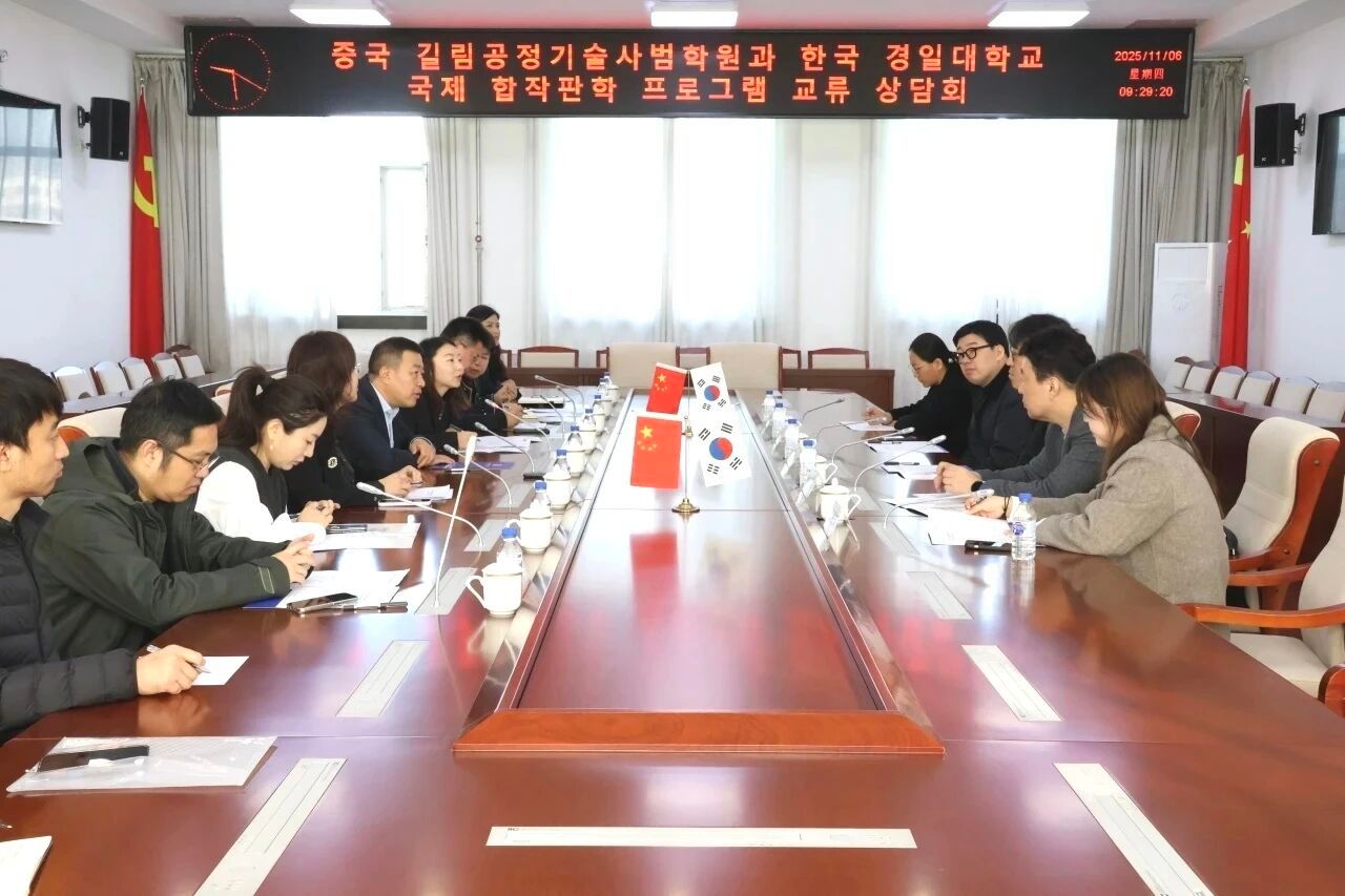 11月6日,吉林工程技术师范学院与韩国庆一大学国际合作办学项目交流洽谈会在办公楼410会议室举行。韩国庆一大学副校长金盛赞、国际交流院院长孙龙镐及相关业务负责人崔世宪、白丽玉出席会议。学校副校长张存贵出席会议,会议由国际交流处处长赵文博主持。