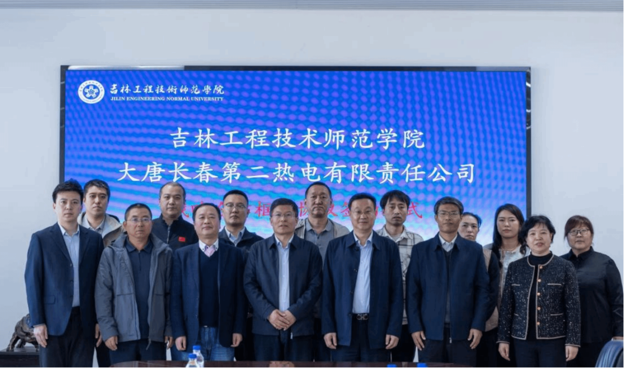 吉林工程技术师范学院副校长刘克平、研究生院副院长刘国成、电气与信息工程学院相关领导及教师代表,与大唐长春第二热电有限责任公司党委书记、董事长姜宝双、总工程师王波等出席签约仪式。活动由电气与信息工程学院院长罗红宇主持。